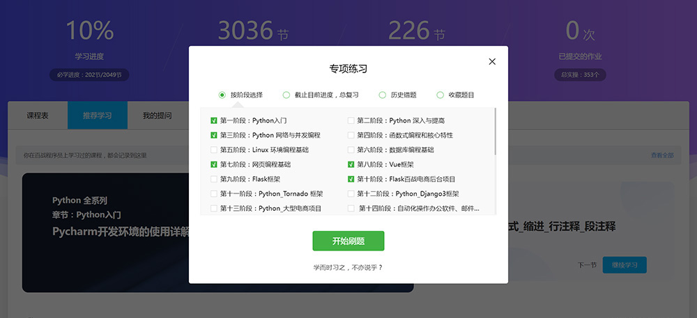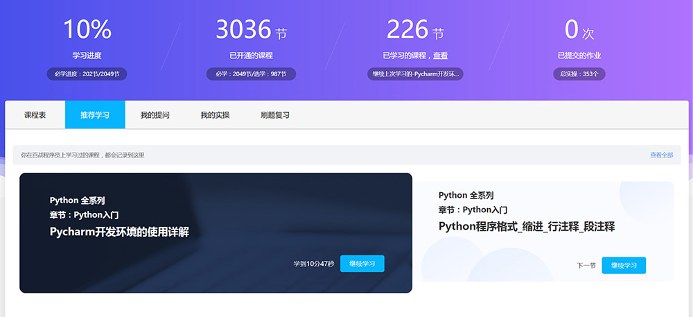 目前开设的学科有:Java、Java架构、大数据、Web前端、Python、人工智能等十二大学科。